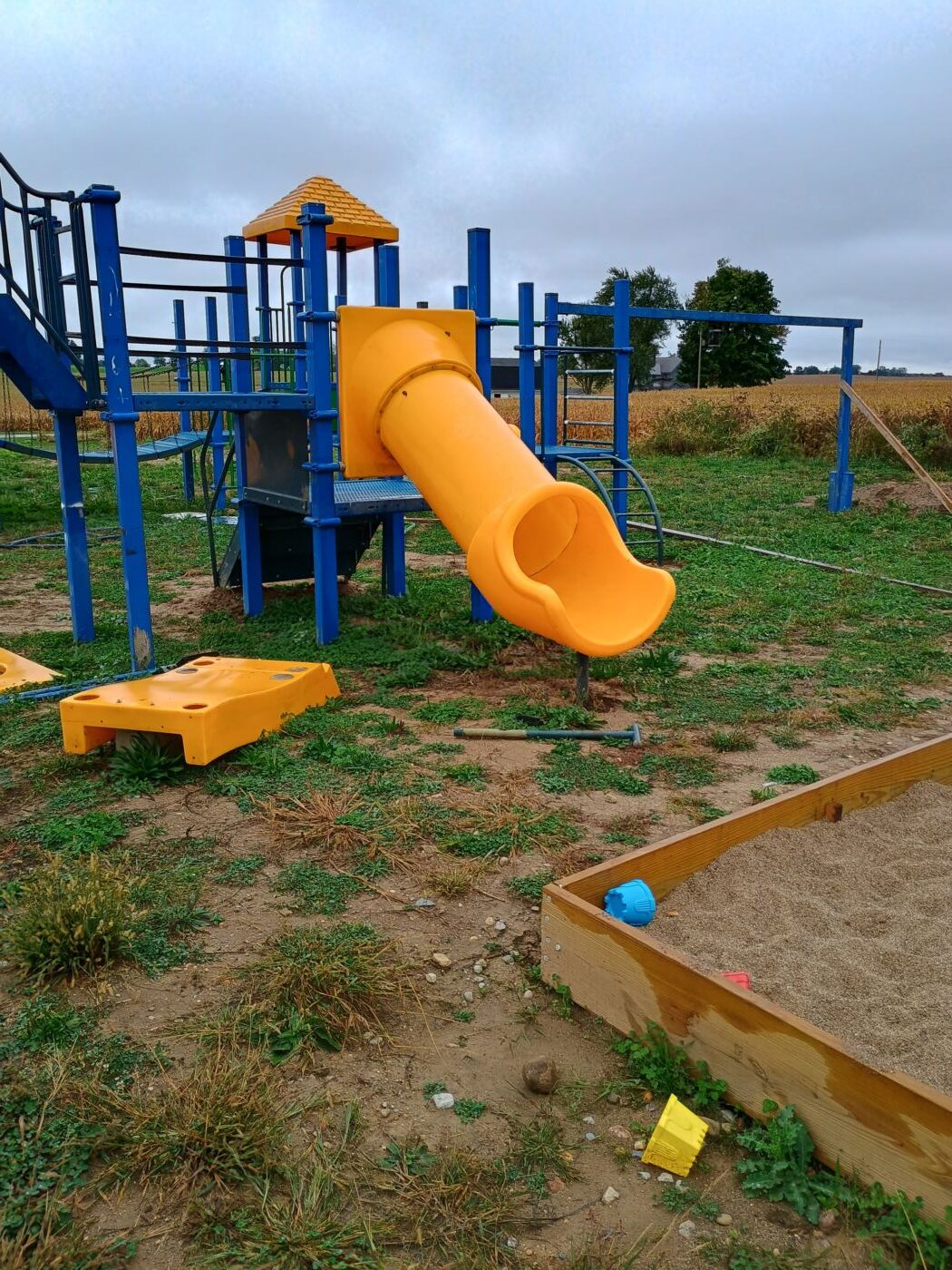 Work is proceeding on the playground equipment again. There is a work day planned for Oct 13th. We can use many hands. We would really like to get this done before winter sets in. You can come and help even if you don’t have children at the school. If you want details, call 574-847-1369.