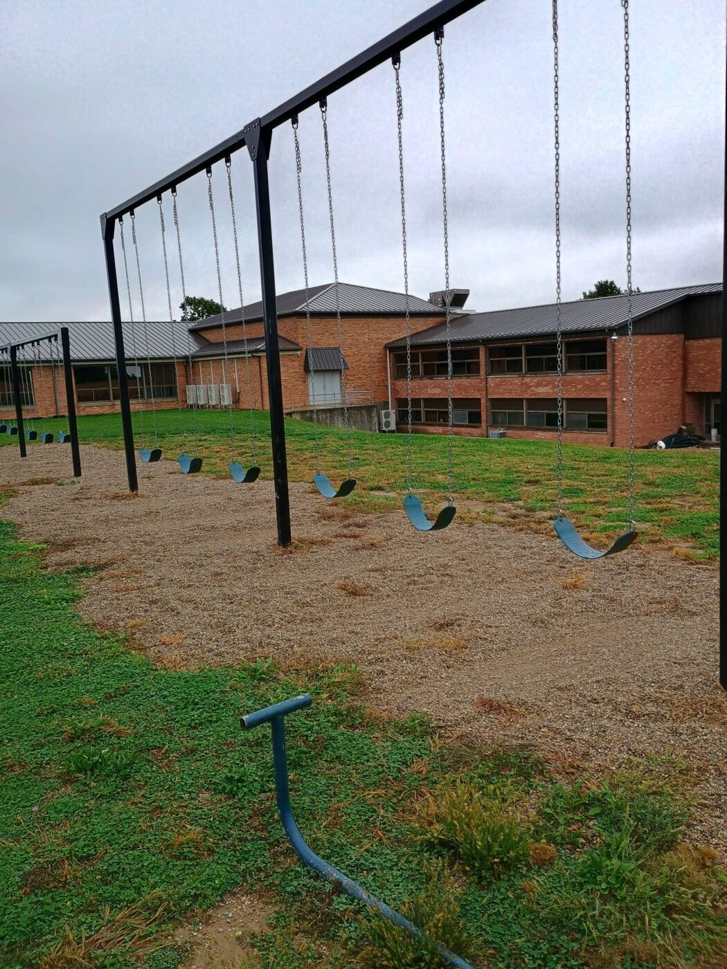 Looking at this equipment, it reminds me of the “dangerous” playgrounds I had when I was in school. All metal or wood, hot in summer, cold in winter. Splinters on the wood teeter-totter. A merry-go-round that had an open center. Very tall swings. It’s a wonder I’m here to tell the story. Evidently kids were tougher in those days. I will spare you the details of a couple injuries I saw back then!
